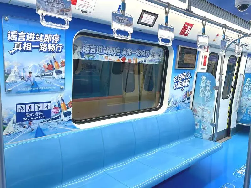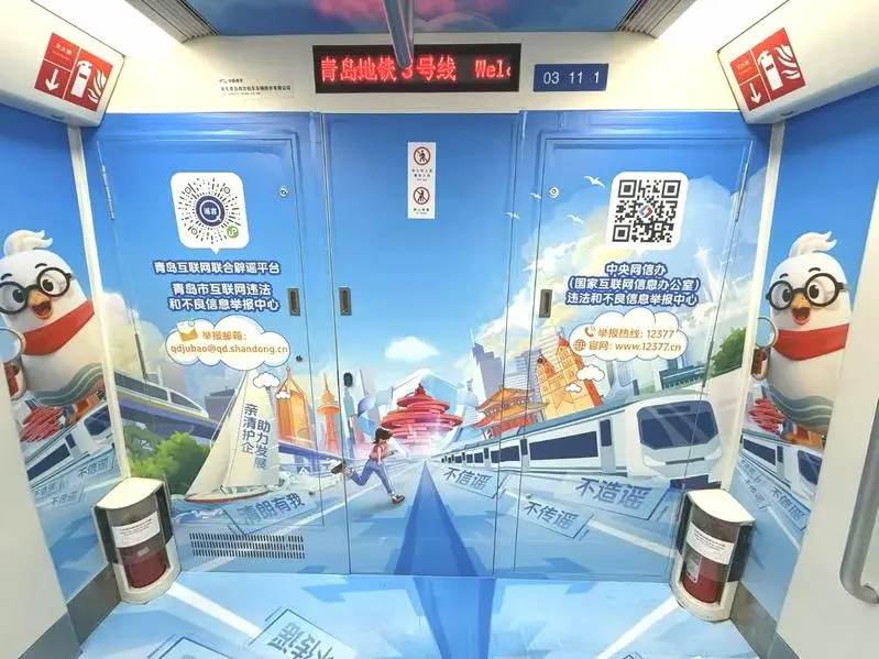 3月16日,青岛地铁3号线首列“辟谣号”专列上线。车厢内外,青岛本地辟谣IP“青小鸥”生动亮相,趣味盎然的辟谣标语点缀其间,醒目位置均印有“12377”举报标识。作为中央网信办设立的官方渠道,“12377”提供免费举报电话、举报网站、举报邮箱等服务,受理和处置社会公众对互联网违法和不良信息的举报。专列将权威举报渠道与辟谣信息悄然融入市民日常出行场景之中,这不仅是城市公共交通的一道流动风景线,更是青岛市委网信办发动全社会力量、共建清朗网络空间的创新实践。