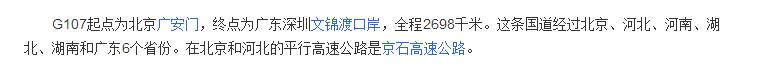 这条信息看上去倒是没什么问题,但是仔细分析却能发现很多蹊跷,首先107国道是从北京到深圳的重要交通干线之一,经过六个省份但并没有经过山东。