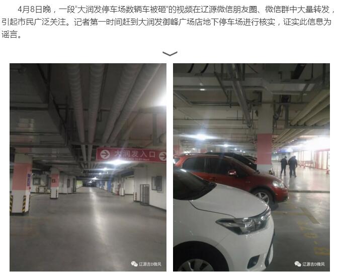 据报道,事发4月8日,辽宁鞍山大润发超市(海城店)的地下车库。据媒体采访,工作人员表示事情发生在下午7点半左右,车主都在现场也都联系到了。记者询问:“咱们现在怎么处理了啊?”工作人员称“现在还没处理呢,这边还没决定呢,因为它涉及到其他方,所以现在还没法答复。”