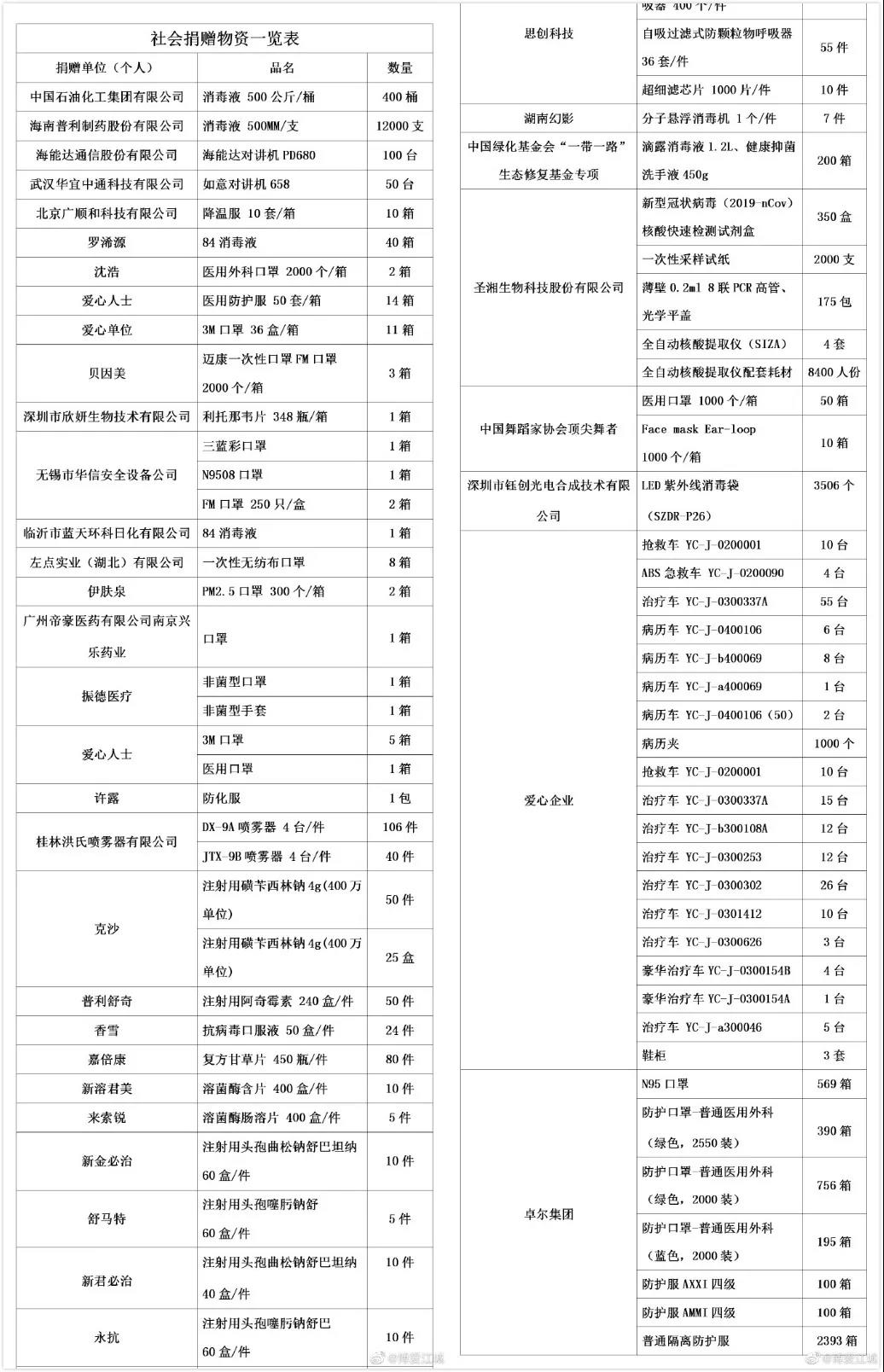 长安街知事(微信ID:Capitalnews)注意到,疫情发生以来,武汉红十字会收到了大量社会捐赠款物,并分3期公布了相关清单。