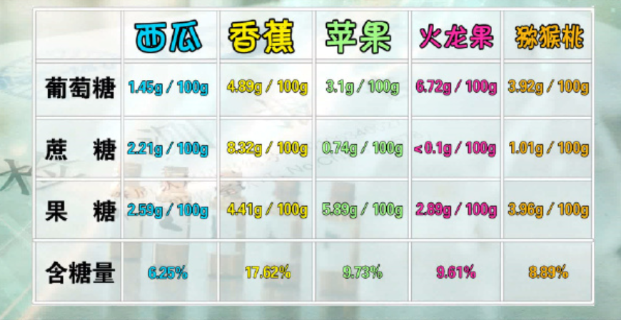 水果热量的高低取决于含糖量,含糖量越高的水果,热量越高。但西瓜虽然吃起来甜,含糖量却不高,比常吃的香蕉、苹果、火龙果等口味平淡的水果要低。