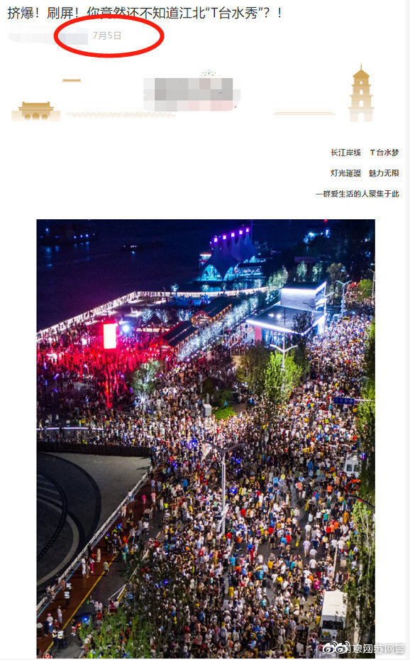 对此,江苏网警进行了辟谣,经核实,一张图片实为7月初江北新区浦口码头附近的“T台水秀”现场,并非核酸检测点。(图如下)