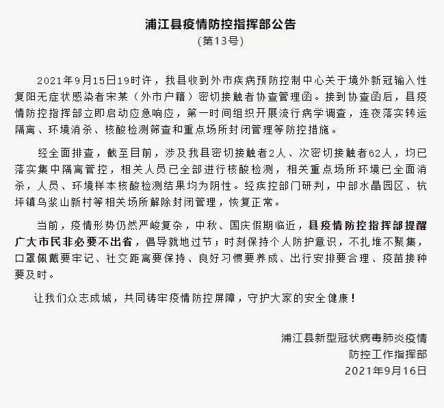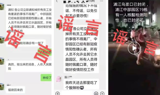 9月15日晚,网传“浦江已有一例新冠肺炎确诊病例”。都是谣言!