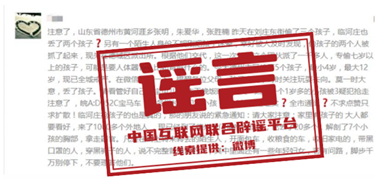 中国互联网联合辟谣平台提醒