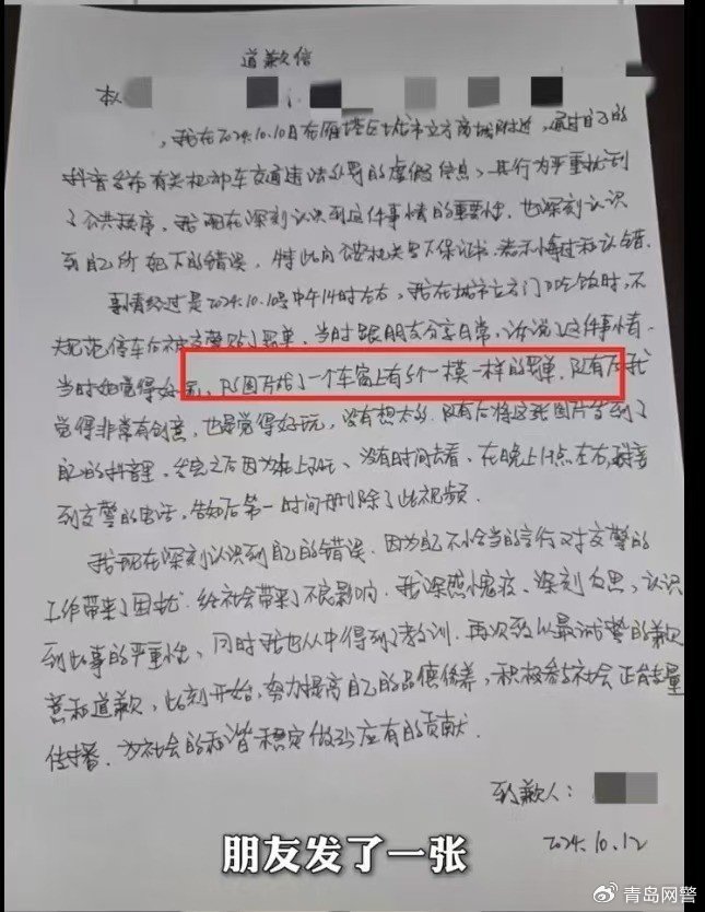 信网10月15日讯 据@青岛网警消息,近日,有网民在短视频平台发布信息称,该在西安雁塔区城市立方商城附近,同一时间连续被交警处罚5次,车窗上贴了5张罚单,引发舆论广泛关注。