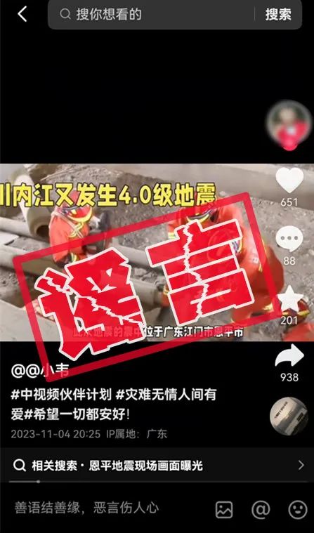 经查,11月14日,周某某为博取关注,在其家中,将一段未经证实、道听途说的车祸视频,配以“事发地在沙湾区嘉农镇”的不实描述,发布在一个......2025 11/20 21:04 -- 来源: 互联网辟谣平台