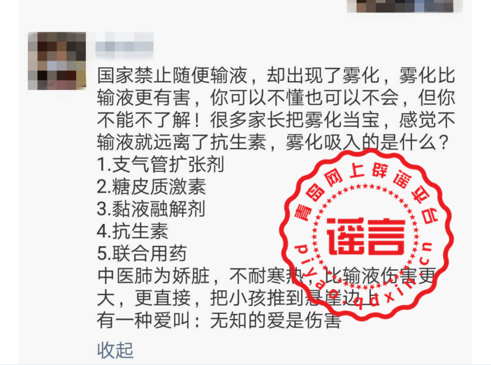 信网1月17日讯 微信朋友圈总是不缺乏各种“专家” 。不少看似言之凿凿的言论总是充斥着妈妈们的视野。最近,一则关于“雾化对宝宝身体伤害很大” 的消息刷屏朋友圈↓↓↓