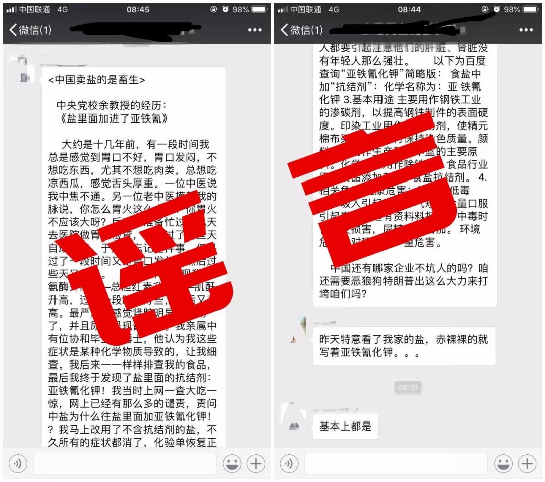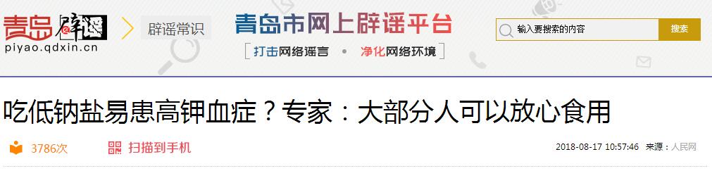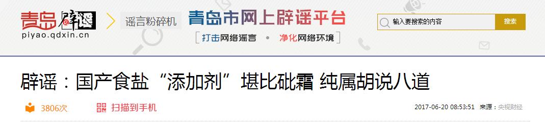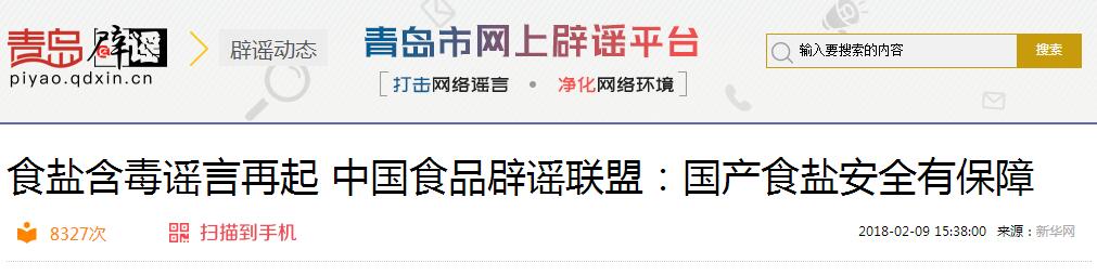 来,先感受一下从2017年开始青岛网上辟谣平台转载过“食盐含毒”“吃食盐患病”的辟谣报道。