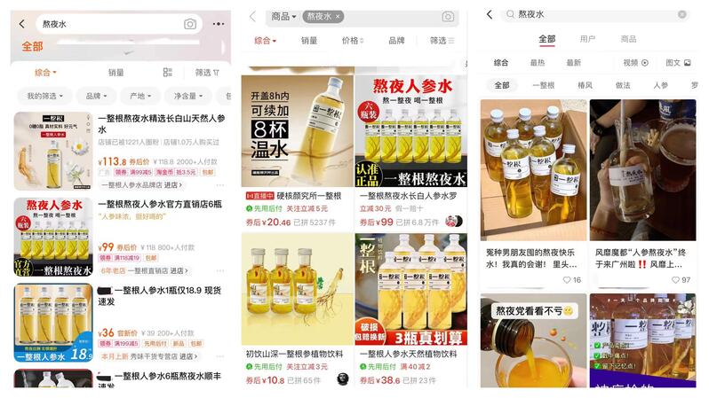 可在电商平台及社交论坛以“熬夜水”为关键词搜索,排名靠前的均是这款产品。