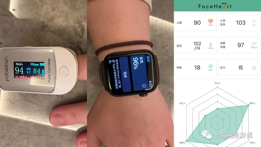 实测发现,两个不同品牌的血氧仪监测结果差异仅为1%;而血氧仪与智能手表、网页的监测结果出现了2%-3%的差异。