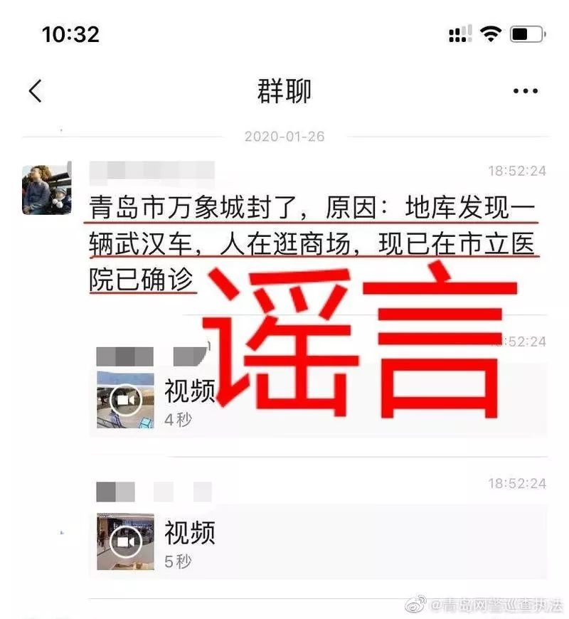 2月2日,一则“青岛将于2月4日封城”的消息在朋友圈广泛传播。经核实,此消息为虚假消息。公安机关已对发布该信息的网民张某某,依法教育训诫。