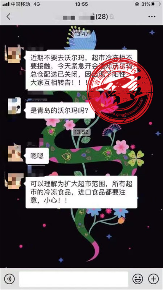 10月31日,一则“沃尔玛总仓配送检测出阳性”的微信聊天截图在部分青岛人的朋友圈中传播,引发网友关注。经记者调查,2019年3月25日,随着沃尔玛青岛台东店正式闭店,沃尔玛已全面退出青岛市场,聊天截图中提到“青岛沃尔玛”相关信息不属实。
