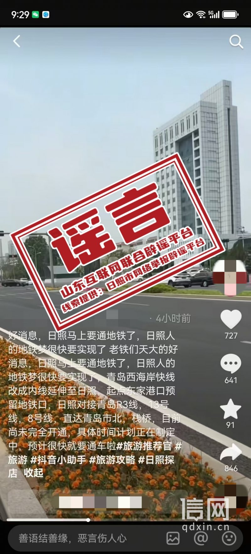 信网12月30日讯 青岛将进行全城大检查?6月1日起电费改为分时计价?西海岸快线改成内线延伸至日照?……2025年,部分涉青涉鲁网络谣言花样翻新,或无中生有制造恐慌,或移花接木误导公众,严重扰乱正常社会秩序。青岛市网上辟谣平台快速响应,通过全平台推送权威核实结果,及时遏制谣言扩散。岁末回望,梳理全年典型谣言案例,用事实澄清谬误,守护社会信任与网络秩序。(王熠冉)