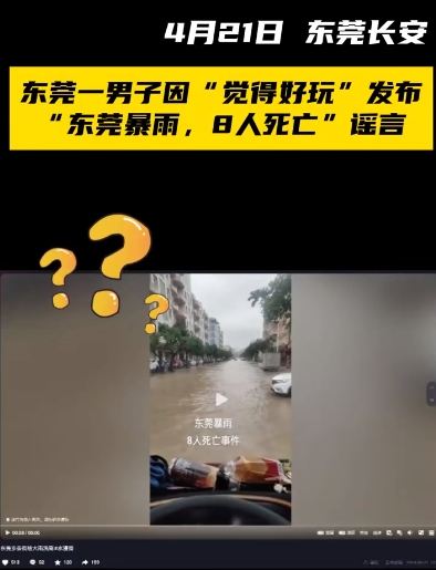 原标题:东莞公安依法处置一起“东莞暴雨8人死亡”网络谣言