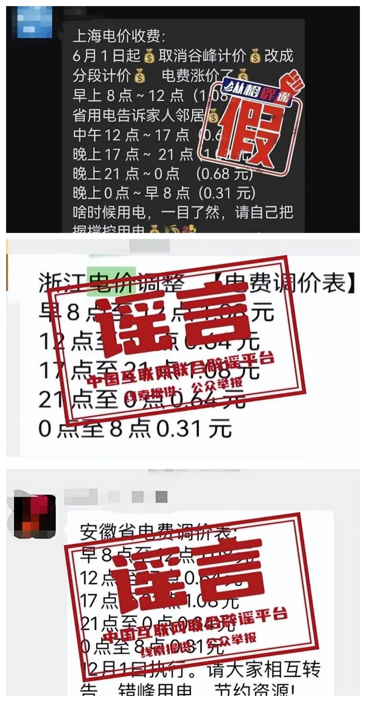 经搜索发现,此前,上海、安徽、浙江、江苏等地也有所谓“居民用电要取消谷峰计价,改成分段计价”的相关消息传出,均被官方进行了辟谣。