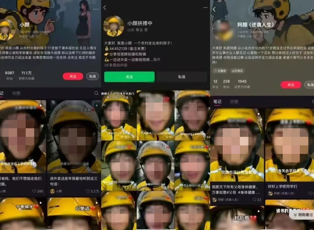 视频账号“苏星颜努力中”“小颜拼搏中”等账号(以下简称“苏星颜”)自今年 6 月 14 日起更新数十条作品,所有视频均身穿外卖骑手工服,哭诉“后悔没好好读书”“凌晨四点送外卖”“每天跑十几个小时外卖”“一个差评一天白干”等悲惨经历,引发大量网民关注和讨论。