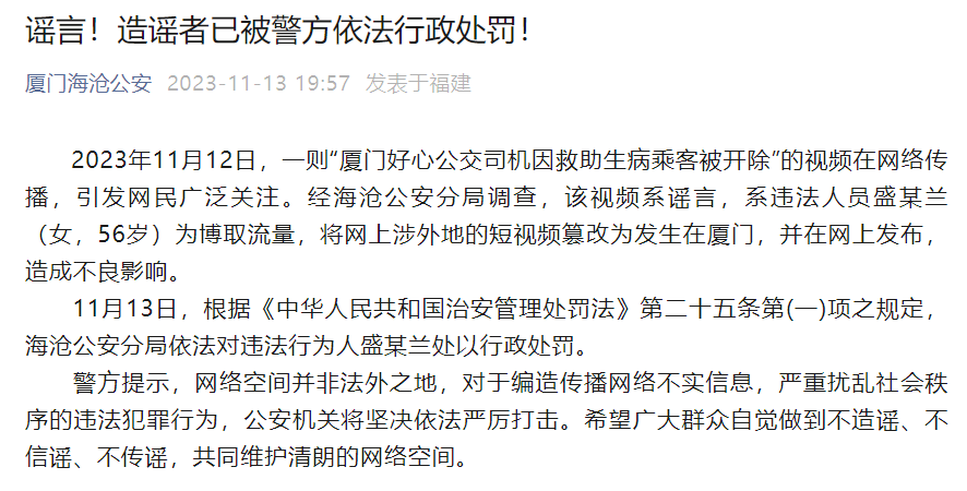 经查,11月14日,周某某为博取关注,在其家中,将一段未经证实、道听途说的车祸视频,配以“事发地在沙湾区嘉农镇”的不实描述,发布在一个......2025 11/20 21:04 -- 来源: 互联网辟谣平台