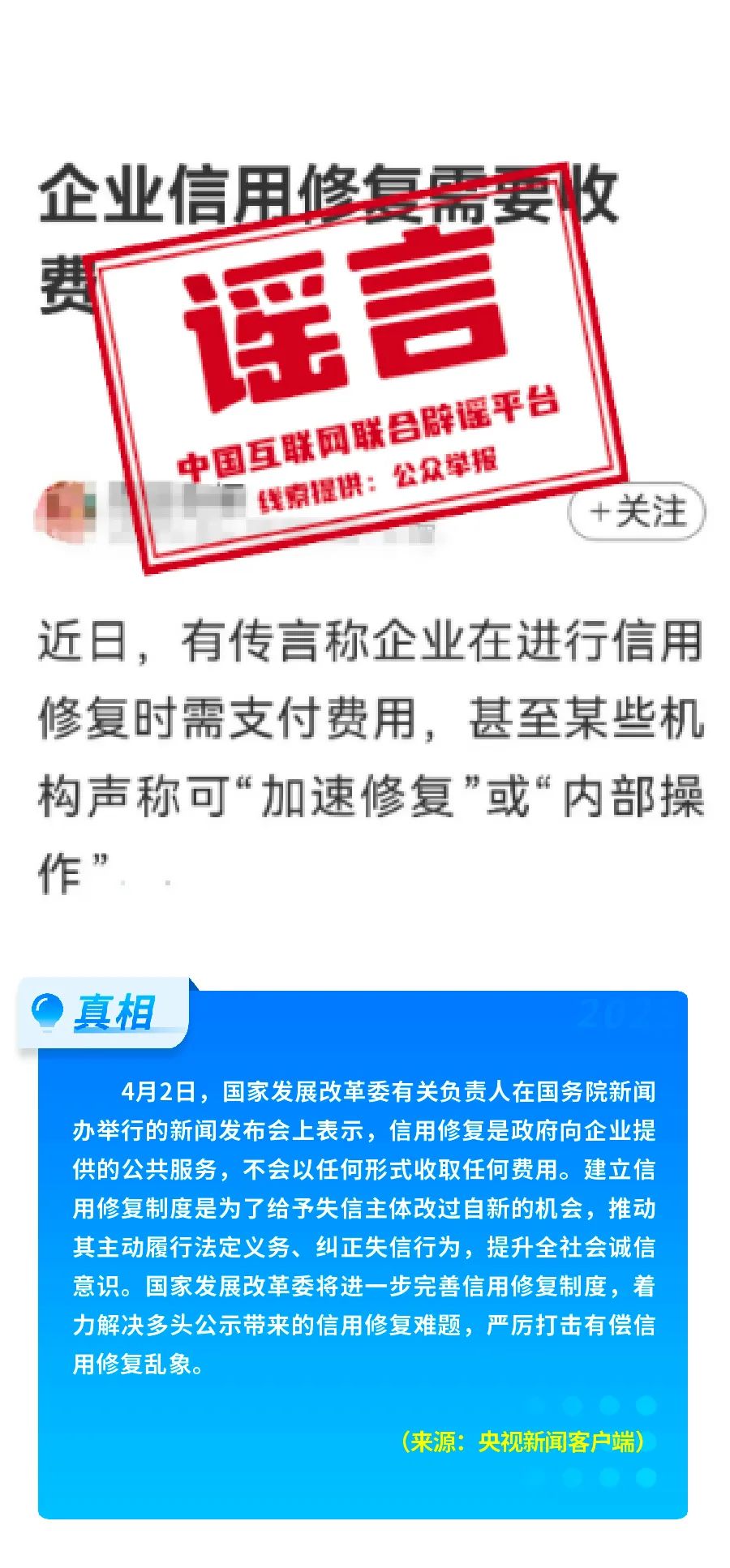 谣言二 企业信用修复需要收费?