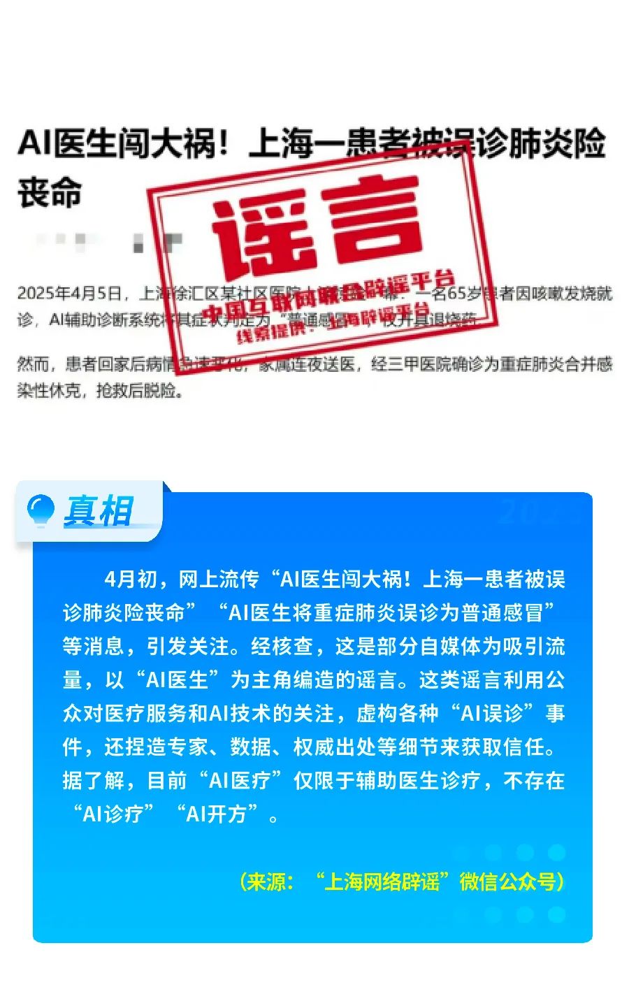 谣言八 上海一患者被AI误诊肺炎险丧命?