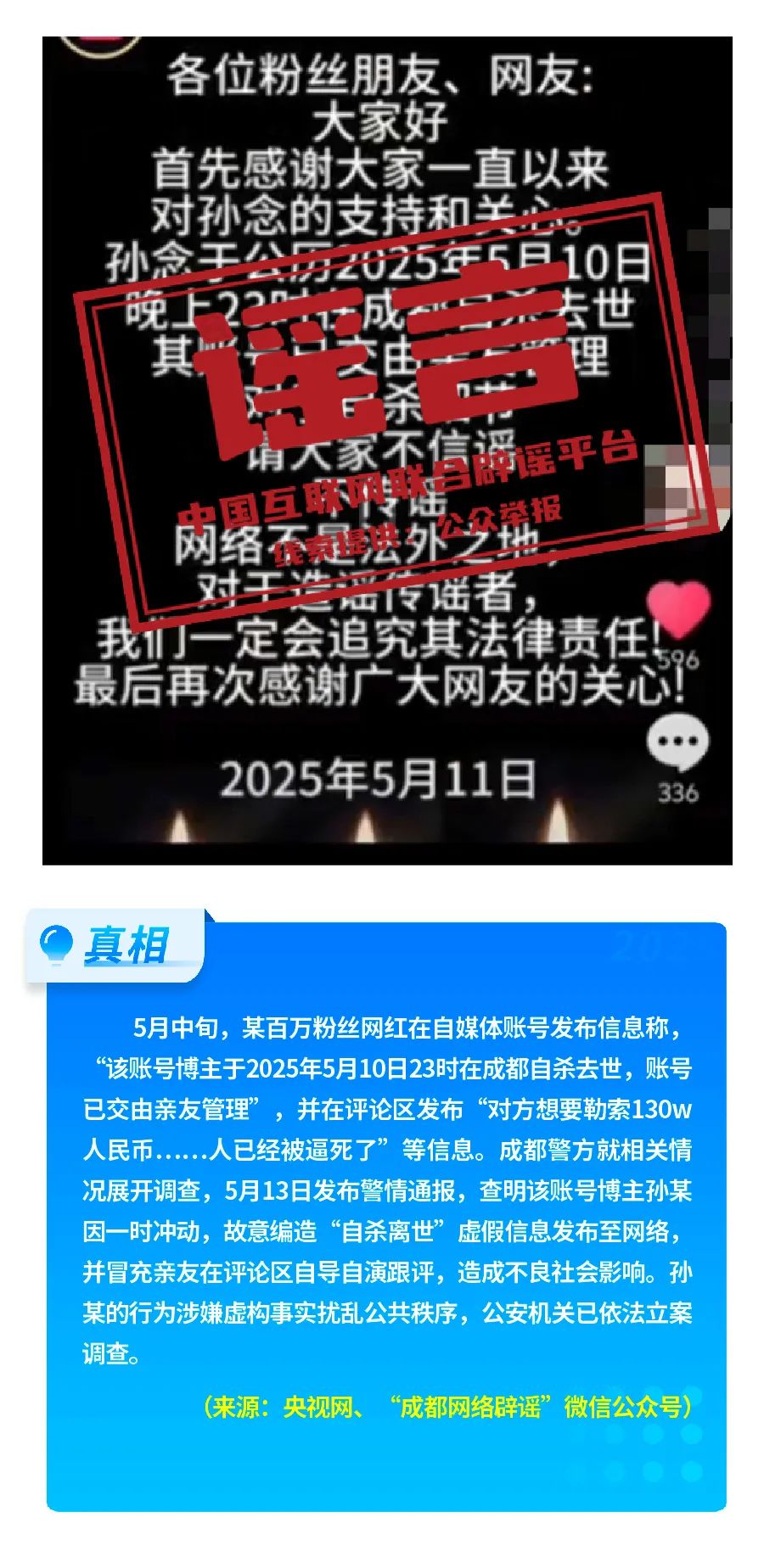 原标题:打击网络谣言 共建清朗家园 中国互联网联合辟谣平台2025年5月辟谣榜